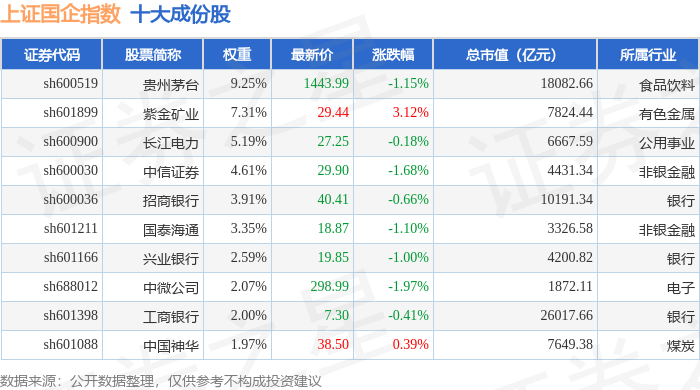 证券之星消息,9月30日,上证国企(000056)指数报收于1194.69点,涨0.03%,成交1304.85亿元,换手率0.37%。当日该指数成份股中,上涨的有37家,江西铜业以10.01%的涨幅领涨,下跌的有61家,中微公司以1.97%的跌幅领跌。