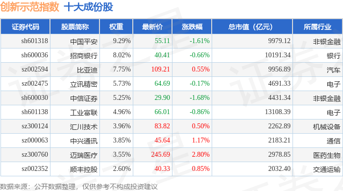 创新示范(399351)指数十大成份股详情如下: