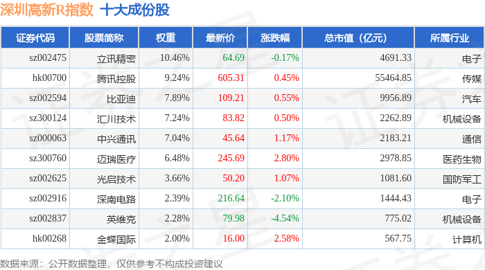 证券之星消息,9月30日,深圳高新R(480038)指数报收于5953.44点,涨1.1%,成交1084.37亿元。当日该指数成份股中,上涨的有32家,江波龙以20.0%的涨幅领涨,下跌的有18家,英维克以4.54%的跌幅领跌。