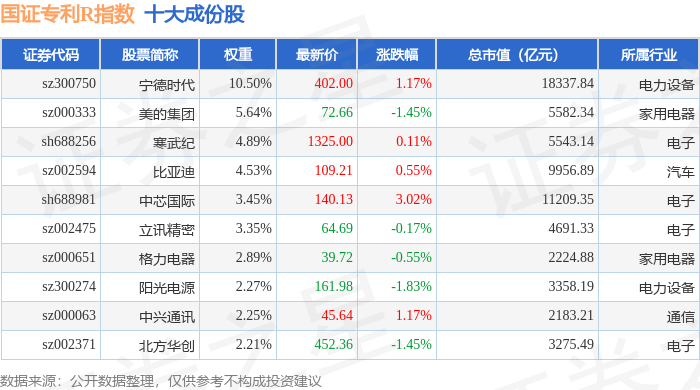 证券之星消息,9月30日,国证专利R(480070)指数报收于4677.53点,涨0.91%,成交2336.41亿元,换手率1.38%。当日该指数成份股中,上涨的有72家,华虹公司以15.72%的涨幅领涨,下跌的有26家,芯原股份以2.66%的跌幅领跌。