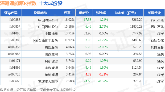 深港通能源R(483013)指数十大成份股详情如下: