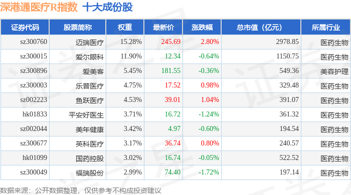 证券之星消息,9月30日,深港通医疗R(483035)指数报收于5495.63点,涨1.13%,成交111.04亿元。当日该指数成份股中,上涨的有42家,医渡科技以13.4%的涨幅领涨,下跌的有15家,楚天科技以2.22%的跌幅领跌。