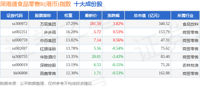 深港通食品零售R(港币)(483038)指数十大成份股详情如下: