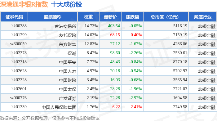 深港通非银R(483053)指数十大成份股详情如下: