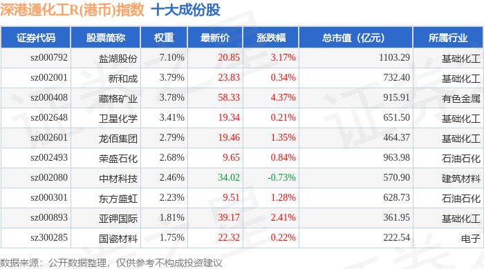 深港通化工R(港币)(483064)指数十大成份股详情如下: