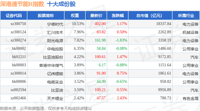 深港通节能R(483085)指数十大成份股详情如下: