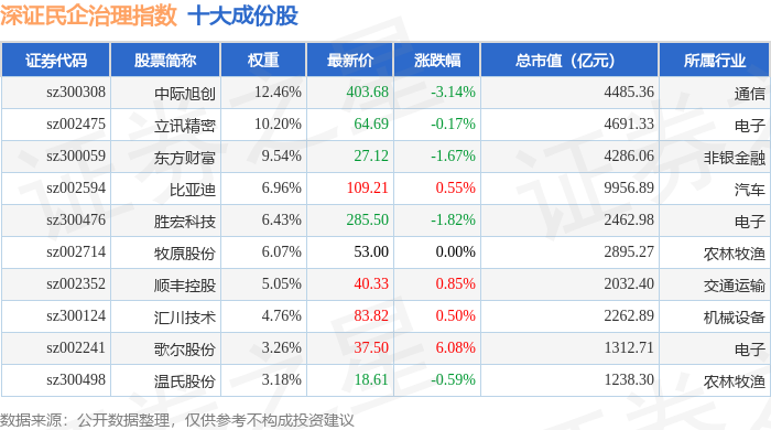资金流向方面,深证民企治理(970058)指数成份股当日主力资金净流出合计74.96亿元,游资资金净流入合计26.11亿元,散户资金净流入合计48.85亿元。成份股资金流向详情见下表: