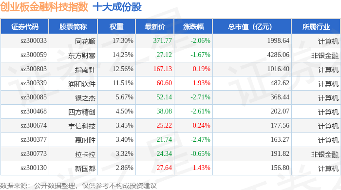 资金流向方面,创业板金融科技(970085)指数成份股当日主力资金净流出合计31.11亿元,游资资金净流入合计6.41亿元,散户资金净流入合计24.71亿元。成份股资金流向详情见下表: