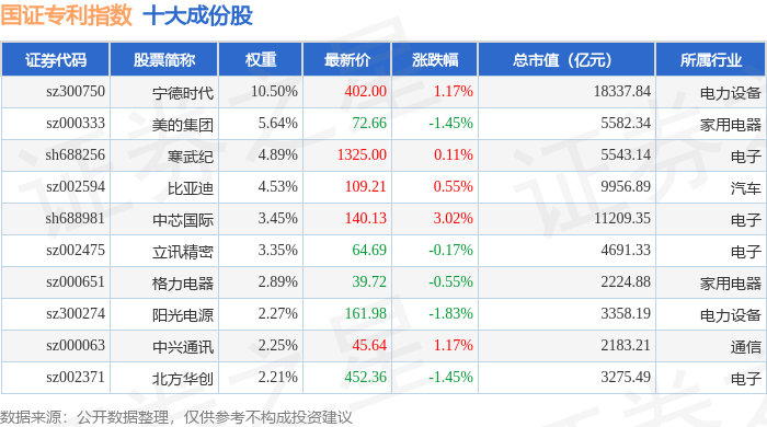 证券之星消息,9月30日,国证专利(980070)指数报收于3787.2点,涨0.9%,成交2336.41亿元,换手率1.38%。当日该指数成份股中,上涨的有72家,华虹公司以15.72%的涨幅领涨,下跌的有26家,芯原股份以2.66%的跌幅领跌。