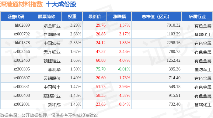 证券之星消息,9月30日,深港通材料(983015)指数报收于6209.0点,涨1.86%,成交1312.64亿元。当日该指数成份股中,上涨的有165家,铂科新材以12.44%的涨幅领涨,下跌的有79家,鲁阳节能以5.41%的跌幅领跌。