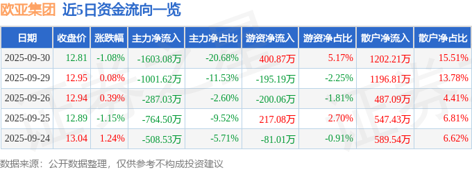 9月30日的资金流向数据方面,主力资金净流出1603.08万元,占总成交额20.68%,游资资金净流入400.87万元,占总成交额5.17%,散户资金净流入1202.21万元,占总成交额15.51%。