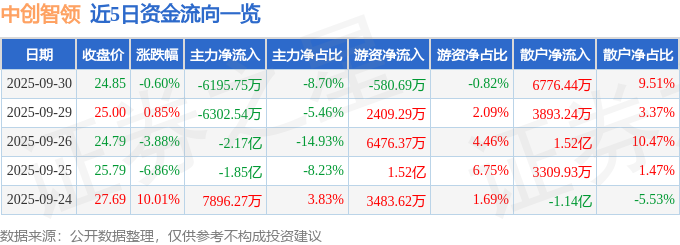 9月30日的资金流向数据方面,主力资金净流出6195.75万元,占总成交额8.7%,游资资金净流出580.69万元,占总成交额0.82%,散户资金净流入6776.44万元,占总成交额9.51%。
