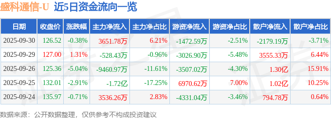 证券之星消息,截至2025年9月30日收盘,盛科通信(688702)报收于126.52元,下跌0.38%,换手率2.29%,成交量4.64万手,成交额5.88亿元。