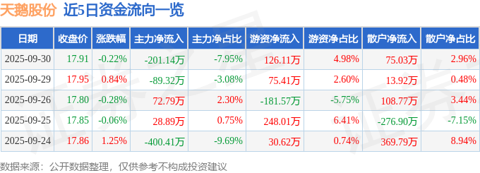 9月30日的资金流向数据方面,主力资金净流出201.14万元,占总成交额7.95%,游资资金净流入126.11万元,占总成交额4.98%,散户资金净流入75.03万元,占总成交额2.96%。