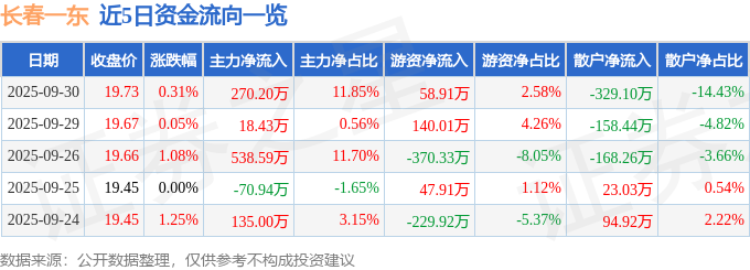 9月30日的资金流向数据方面,主力资金净流入270.2万元,占总成交额11.85%,游资资金净流入58.91万元,占总成交额2.58%,散户资金净流出329.1万元,占总成交额14.43%。