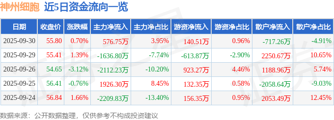 证券之星消息,截至2025年9月30日收盘,神州细胞(688520)报收于55.8元,上涨0.7%,换手率0.59%,成交量2.61万手,成交额1.46亿元。