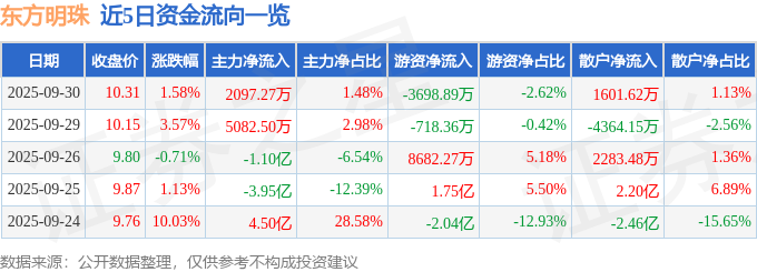 证券之星消息,截至2025年9月30日收盘,东方明珠(600637)报收于10.31元,上涨1.58%,换手率4.12%,成交量138.37万手,成交额14.13亿元。
