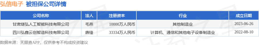 弘信电子9月29日披露2笔对外担保,被担保公司2家。对外担保明细如下表:
