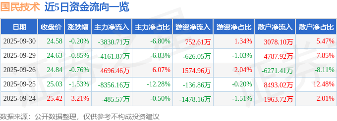 证券之星消息,截至2025年9月30日收盘,国民技术(300077)报收于24.58元,下跌0.2%,换手率4.0%,成交量22.64万手,成交额5.63亿元。