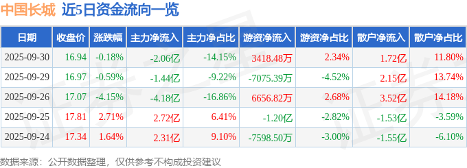 证券之星消息,截至2025年9月30日收盘,中国长城(000066)报收于16.94元,下跌0.18%,换手率2.66%,成交量85.67万手,成交额14.58亿元。