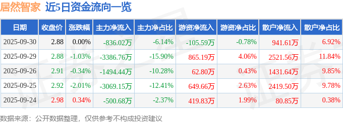 证券之星消息,截至2025年9月30日收盘,居然智家(000785)报收于2.88元,上涨0.0%,换手率0.8%,成交量47.16万手,成交额1.36亿元。