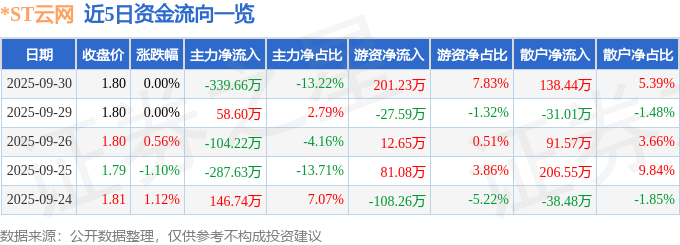 9月30日的资金流向数据方面,主力资金净流出339.66万元,占总成交额13.22%,游资资金净流入201.23万元,占总成交额7.83%,散户资金净流入138.44万元,占总成交额5.39%。