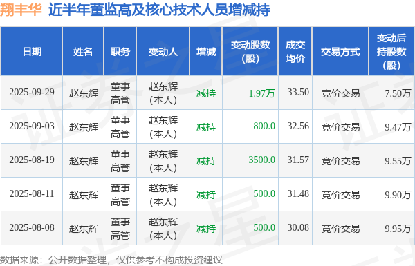 翔丰华近半年内的董监高及核心技术人员增减持详情如下: