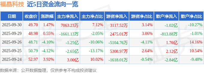 证券之星消息,截至2025年9月30日收盘,福晶科技(002222)报收于49.7元,上涨1.47%,换手率4.27%,成交量20.01万手,成交额9.91亿元。
