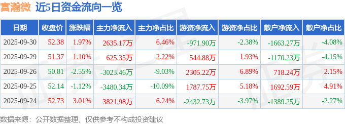 9月30日的资金流向数据方面,主力资金净流入2635.17万元,占总成交额6.46%,游资资金净流出971.9万元,占总成交额2.38%,散户资金净流出1663.27万元,占总成交额4.08%。
