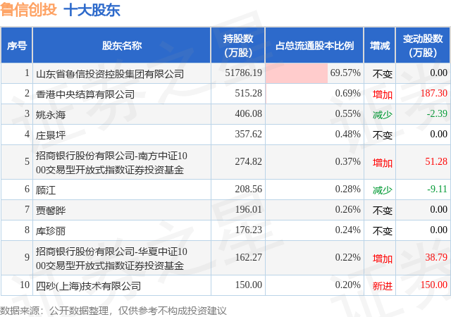 根据鲁信创投2025年中报公布的十大股东详情如下: