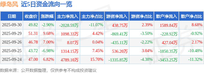 证券之星消息,截至2025年9月30日收盘,绿岛风(301043)报收于49.82元,下跌2.9%,换手率6.37%,成交量3.62万手,成交额1.83亿元。