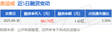 证券之星消息,9月30日,奥迪威(920491)融资买入2529.09万元,融资偿还1546.39万元,融资净买入982.7万元,融资余额1.41亿元。