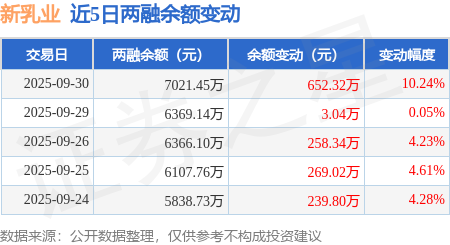 证券之星消息,9月30日,新乳业(002946)融资买入1217.37万元,融资偿还570.0万元,融资净买入647.38万元,融资余额6986.29万元,近3个交易日已连续净买入累计906.01万元,近20个交易日中有12个交易日出现融资净买入。