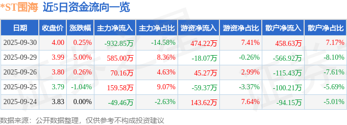 9月30日的资金流向数据方面,主力资金净流出932.85万元,占总成交额14.58%,游资资金净流入474.22万元,占总成交额7.41%,散户资金净流入458.63万元,占总成交额7.17%。