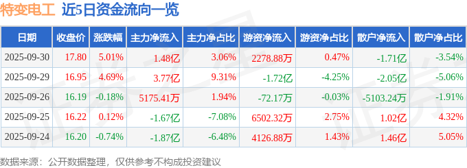 9月30日的资金流向数据方面,主力资金净流入1.48亿元,占总成交额3.06%,游资资金净流入2278.88万元,占总成交额0.47%,散户资金净流出1.71亿元,占总成交额3.54%。
