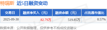 证券之星消息,9月30日,特瑞斯(920014)融资买入88.76万元,融资偿还5.97万元,融资净买入82.79万元,融资余额519.85万元。