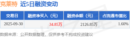 证券之星消息,9月30日,克莱特(920689)融资买入161.66万元,融资偿还126.81万元,融资净买入34.85万元,融资余额2126.85万元。