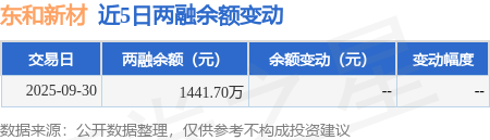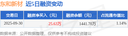 证券之星消息,9月30日,东和新材(920792)融资买入131.06万元,融资偿还105.43万元,融资净买入25.63万元,融资余额1441.7万元。