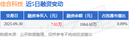证券之星消息,9月30日,佳合科技(920392)融资买入19.0万元,融资偿还11.99万元,融资净买入7.01万元,融资余额1064.6万元。