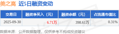证券之星消息,9月30日,美之高(920765)融资买入58.33万元,融资偿还51.63万元,融资净买入6.71万元,融资余额398.61万元。