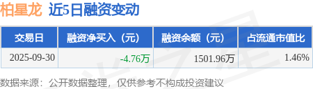 证券之星消息,9月30日,柏星龙(920075)融资买入40.2万元,融资偿还44.95万元,融资净卖出4.76万元,融资余额1501.96万元。