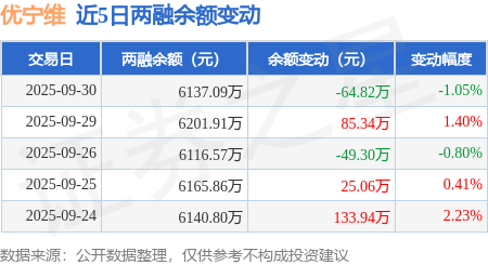 证券之星消息,9月30日,优宁维(301166)融资买入200.2万元,融资偿还265.02万元,融资净卖出64.82万元,融资余额6137.09万元,近20个交易日中有12个交易日出现融资净买入。
