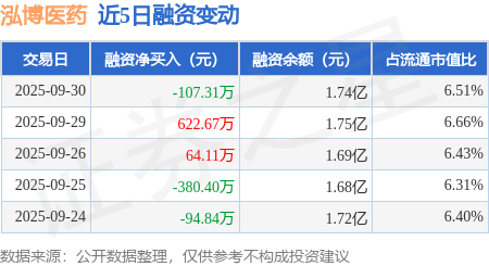 证券之星消息,9月30日,泓博医药(301230)融资买入949.55万元,融资偿还1056.86万元,融资净卖出107.31万元,融资余额1.74亿元。