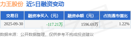证券之星消息,9月30日,力王股份(920627)融资买入278.21万元,融资偿还395.42万元,融资净卖出117.21万元,融资余额1596.69万元。