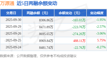 证券之星消息,9月30日,万源通(920060)融资买入969.55万元,融资偿还1134.59万元,融资净卖出165.03万元,融资余额8306.86万元。