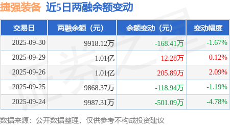 证券之星消息,9月30日,捷强装备(300875)融资买入1578.27万元,融资偿还1746.68万元,融资净卖出168.41万元,融资余额9918.12万元。