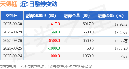 证券之星消息,9月30日,天德钰(688252)融资买入3325.68万元,融资偿还3511.95万元,融资净卖出186.27万元,融资余额3.0亿元。