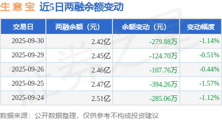 证券之星消息,9月30日,生 意 宝(002095)融资买入515.27万元,融资偿还794.96万元,融资净卖出279.69万元,融资余额2.42亿元。