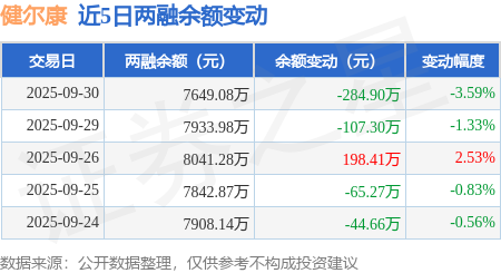 证券之星消息,9月30日,健尔康(603205)融资买入145.88万元,融资偿还430.78万元,融资净卖出284.9万元,融资余额7648.8万元。