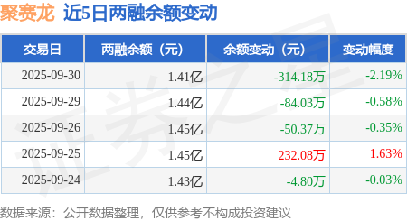 证券之星消息,9月30日,聚赛龙(301131)融资买入244.89万元,融资偿还559.08万元,融资净卖出314.18万元,融资余额1.41亿元。